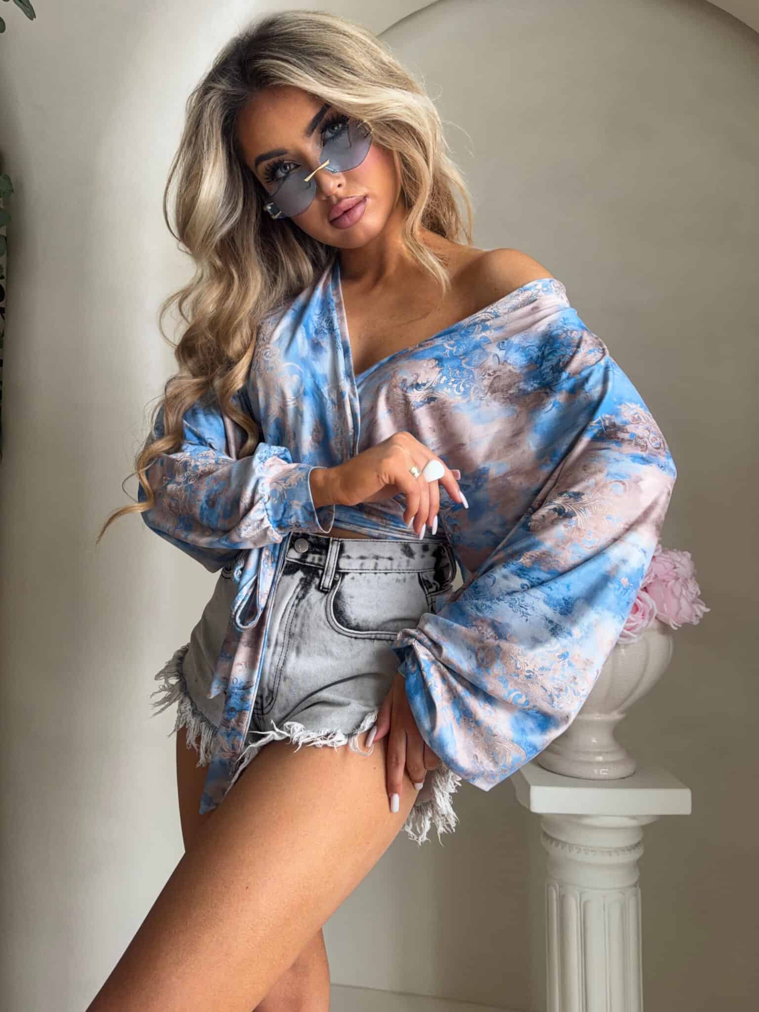 Bluzka KAIRA print ornament – blue