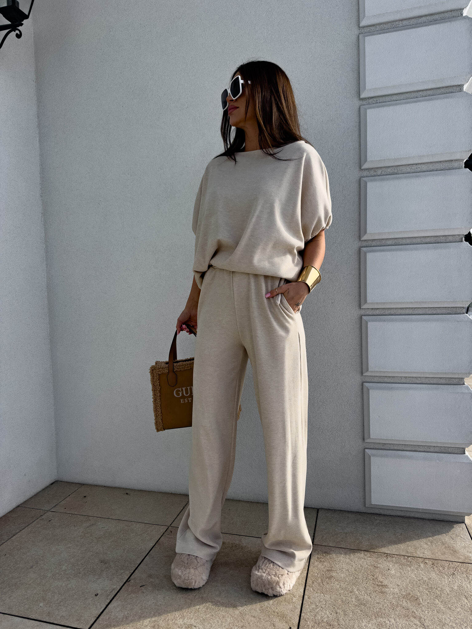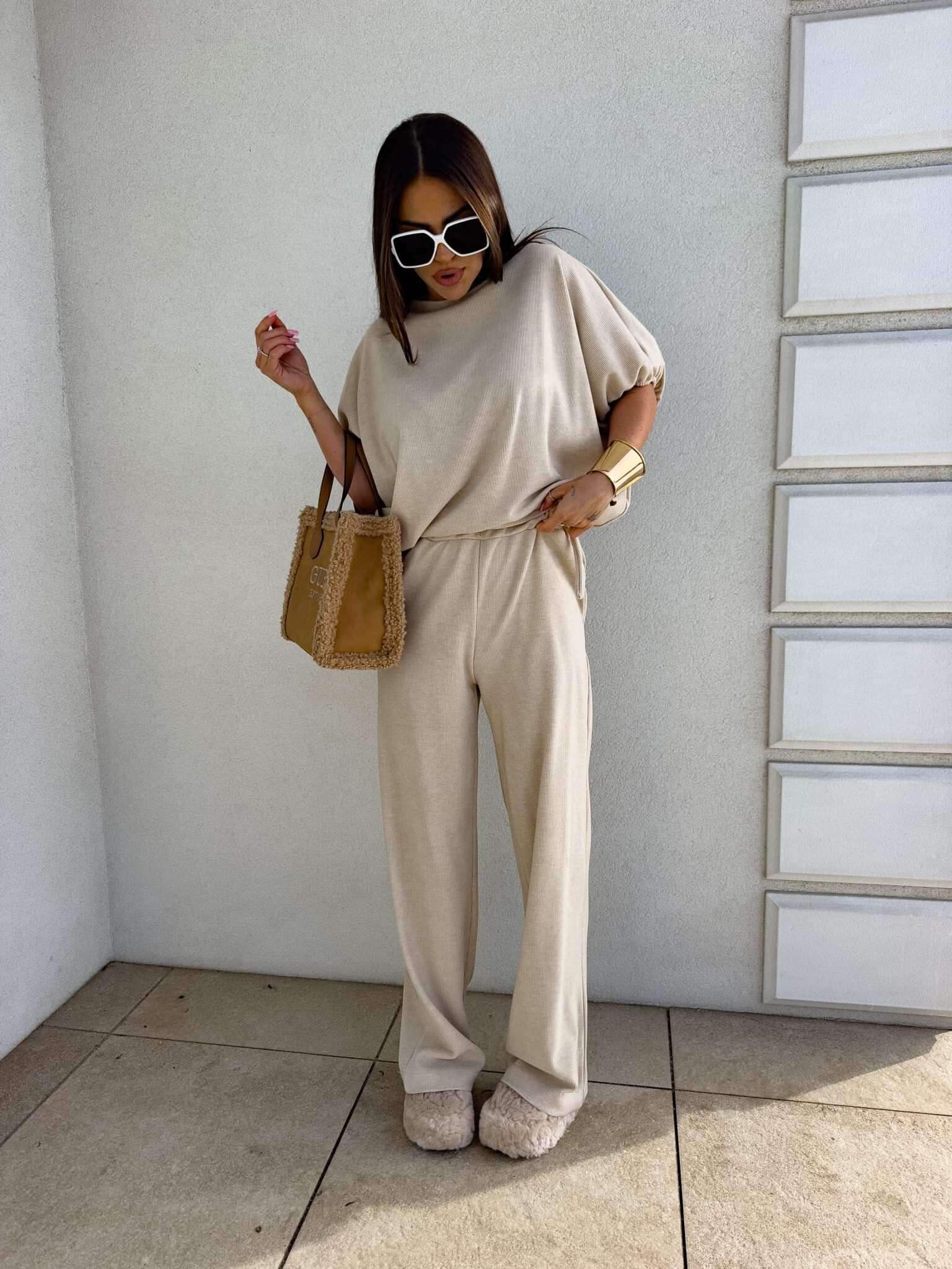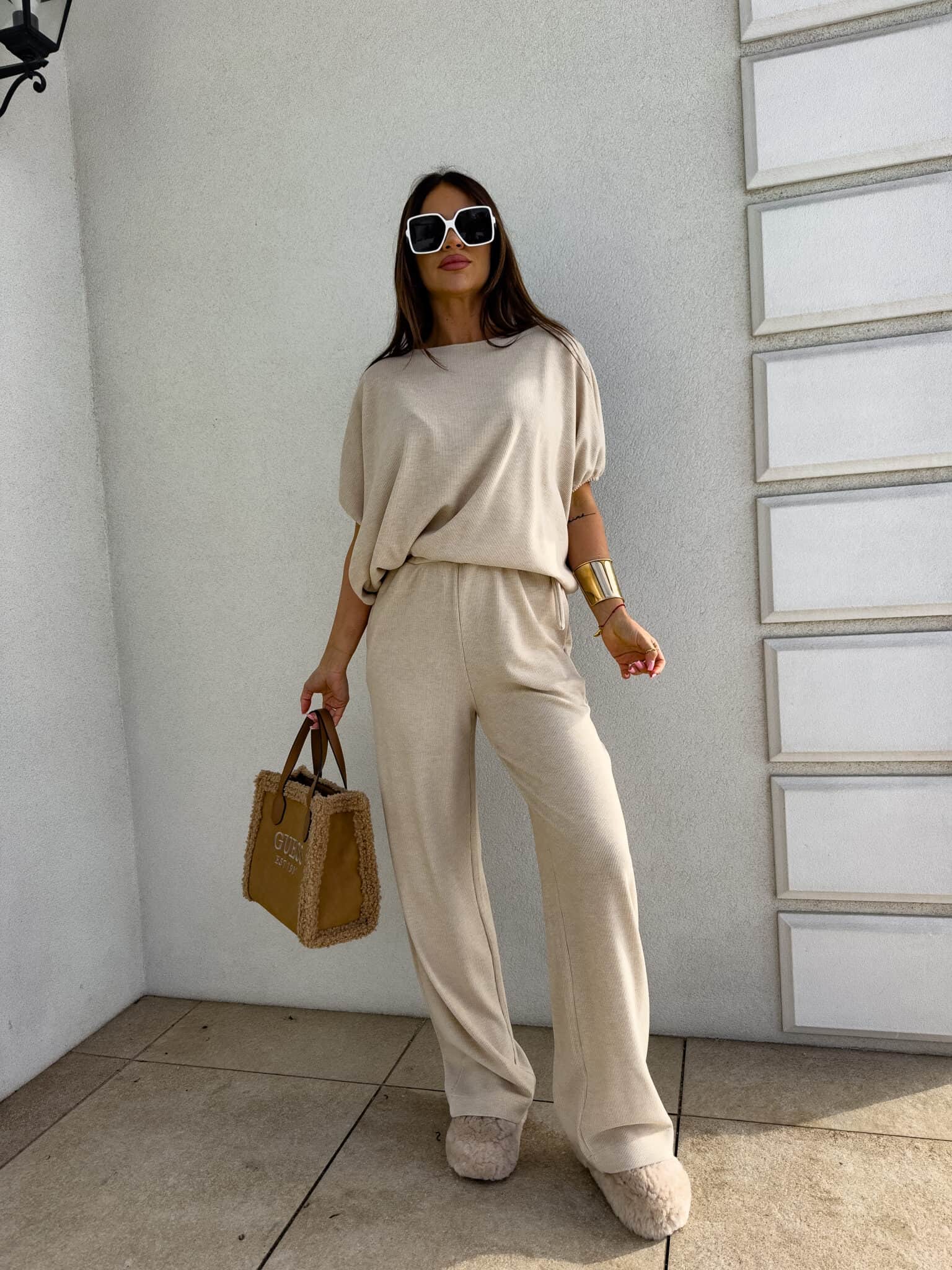Komplet LUXE prążek – jasny beż