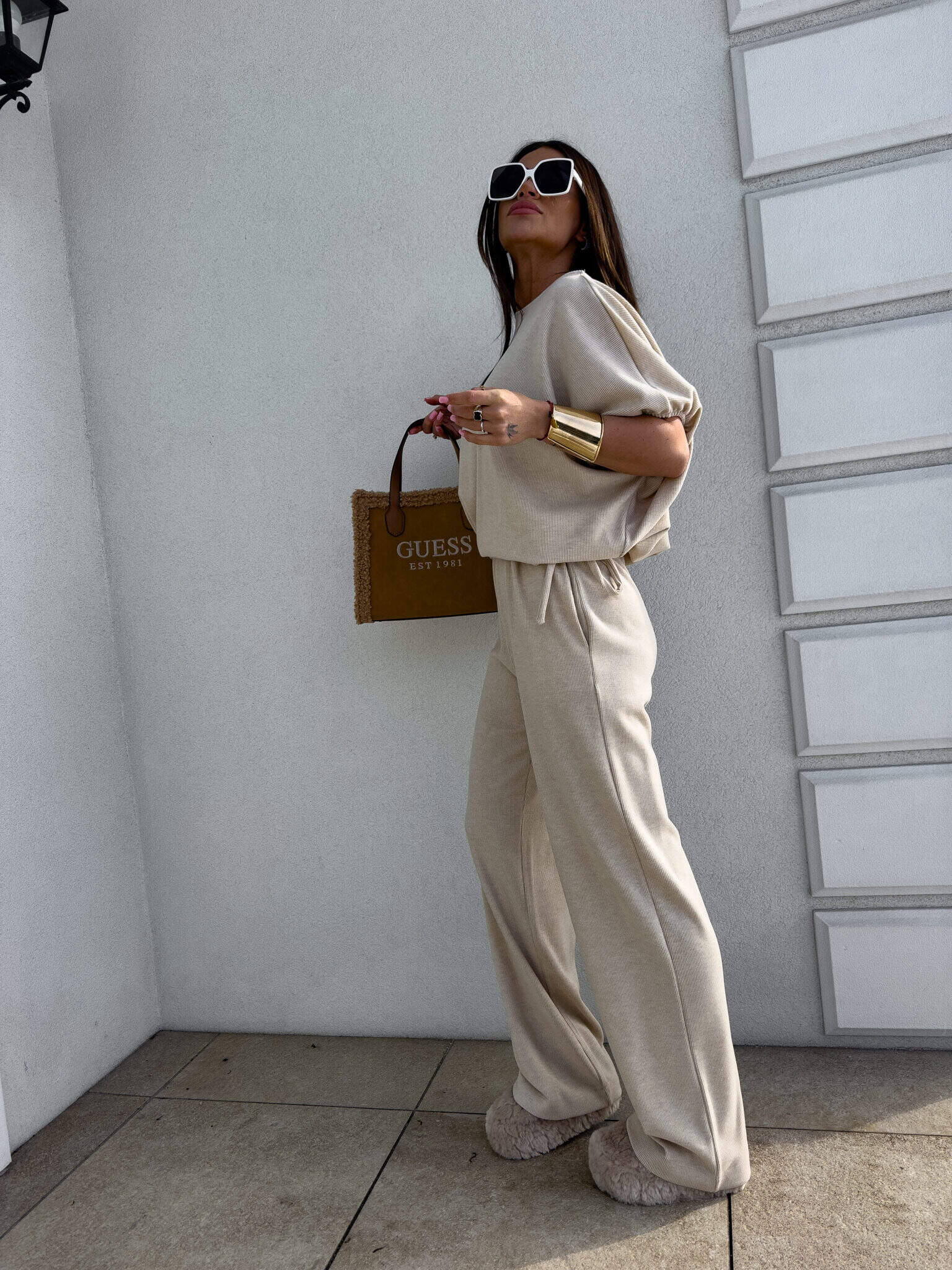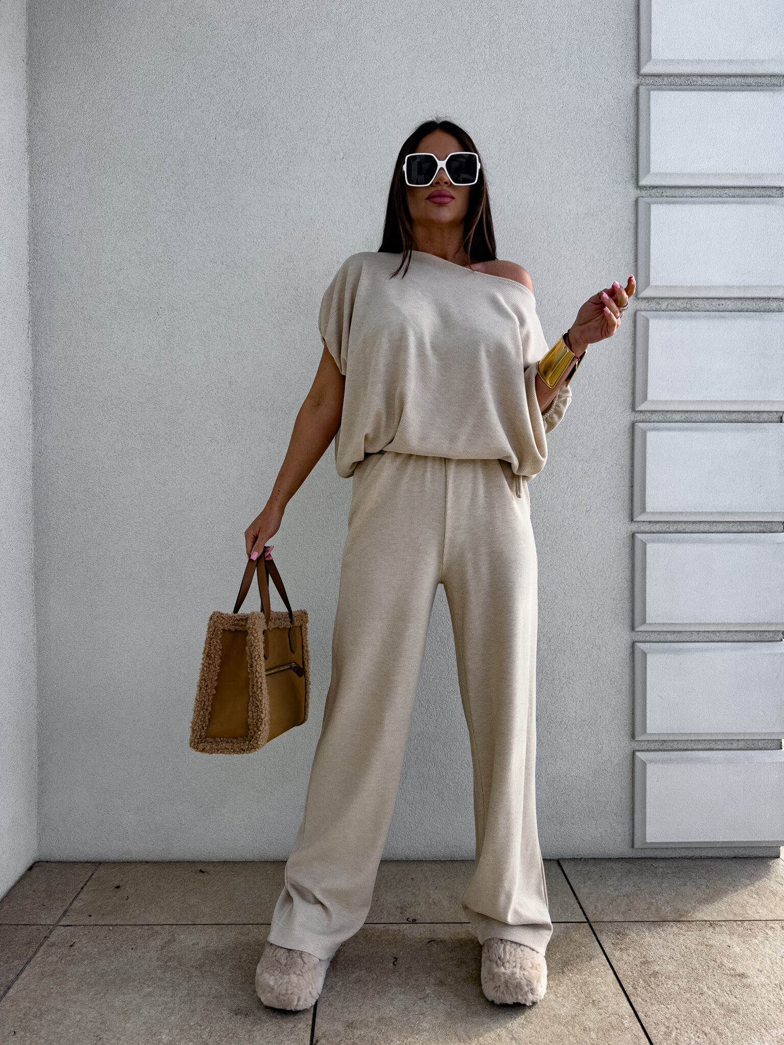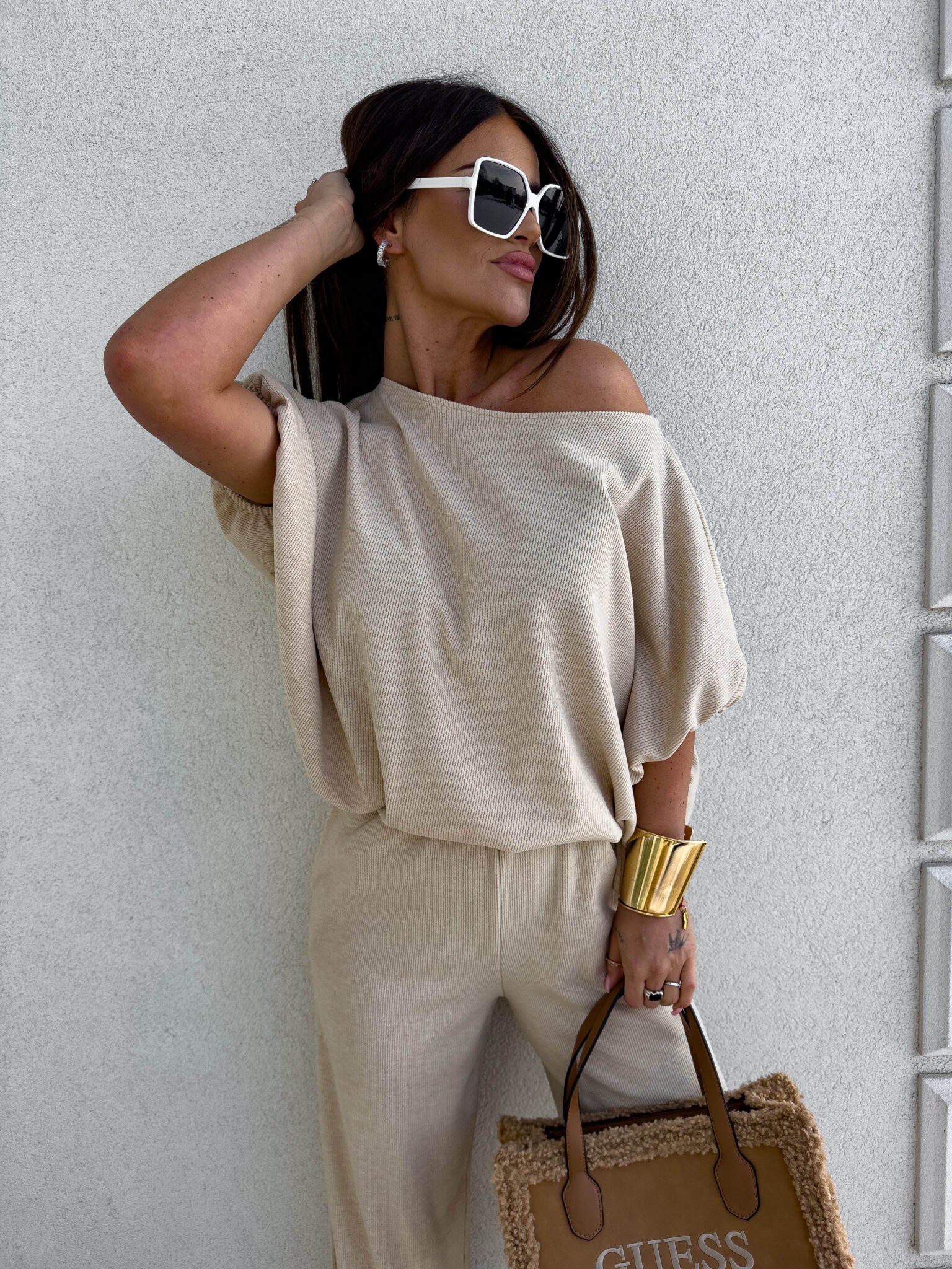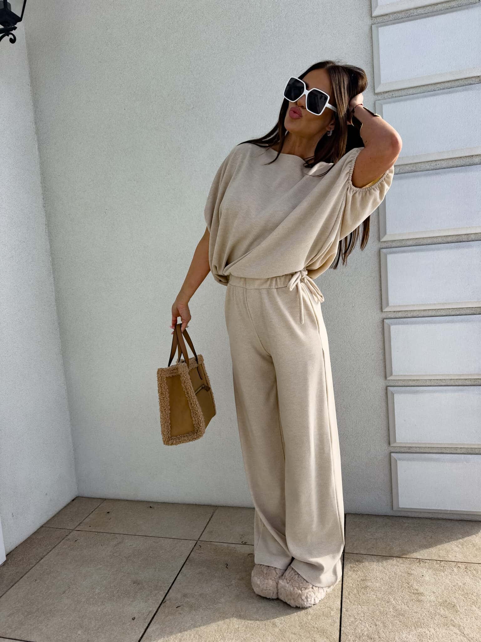 Komplet LUXE prążek – jasny beż
