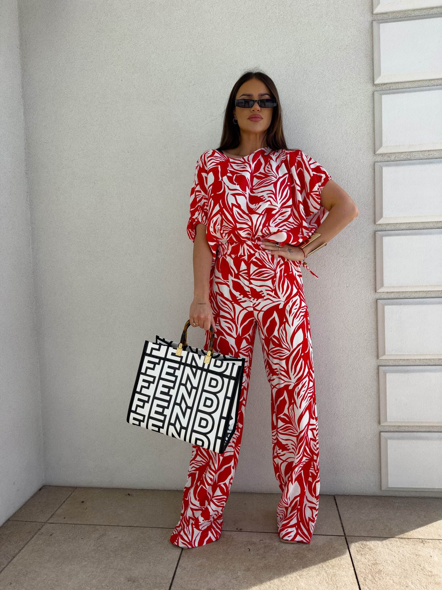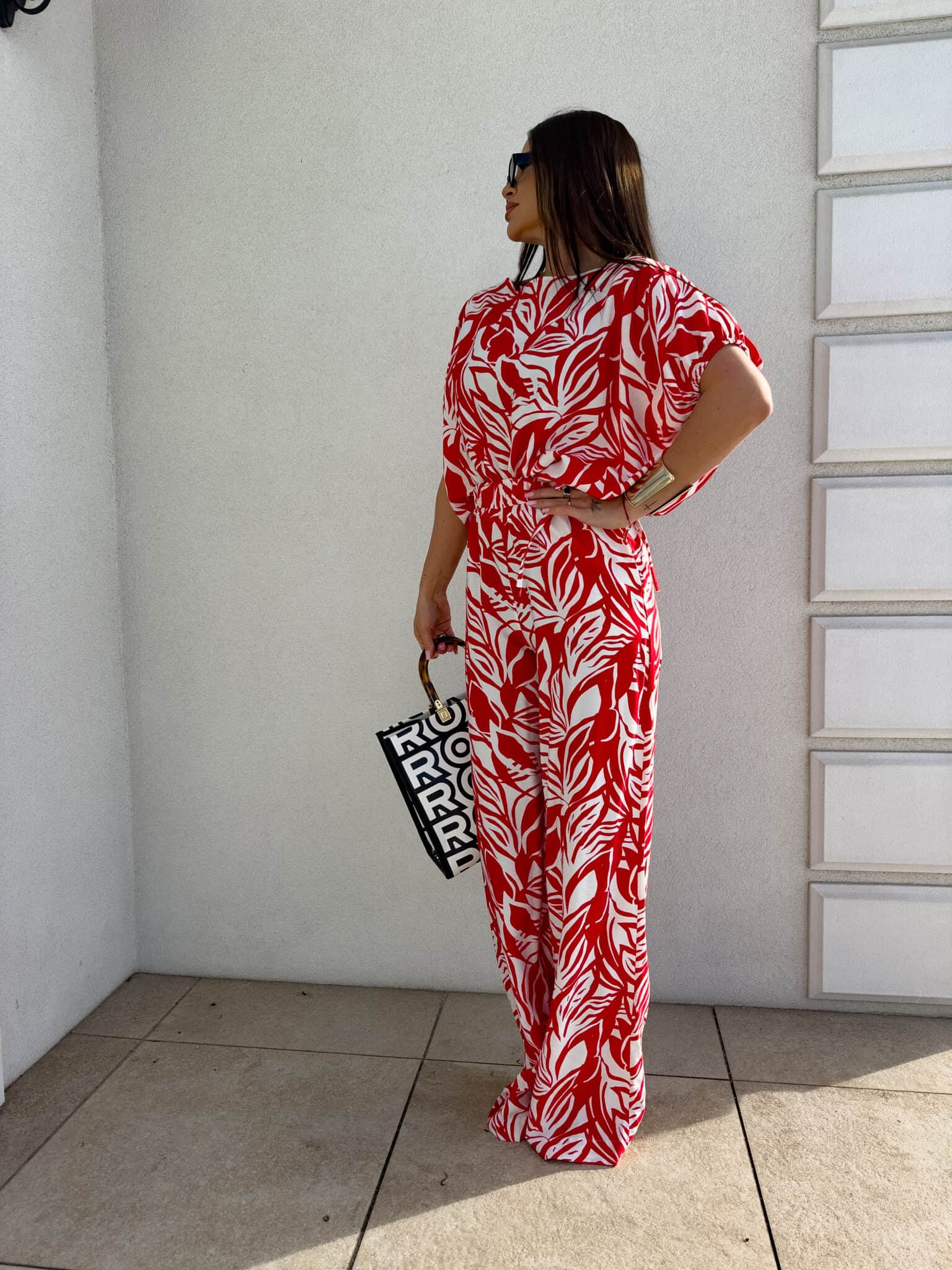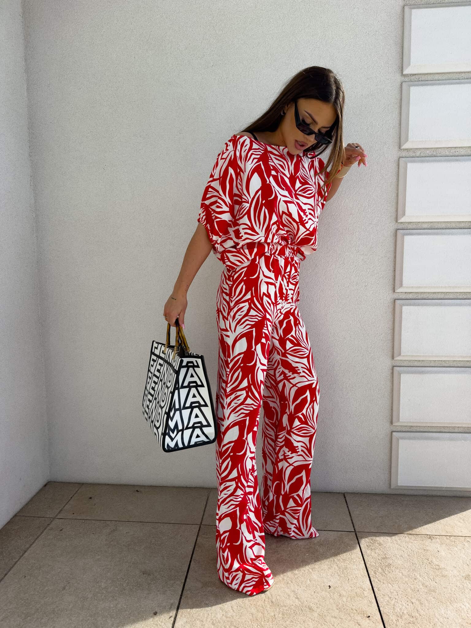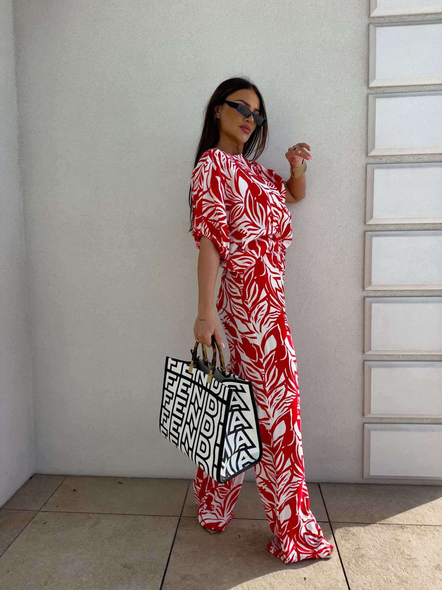 Komplet LUXE print flowers – ecru-czerwony