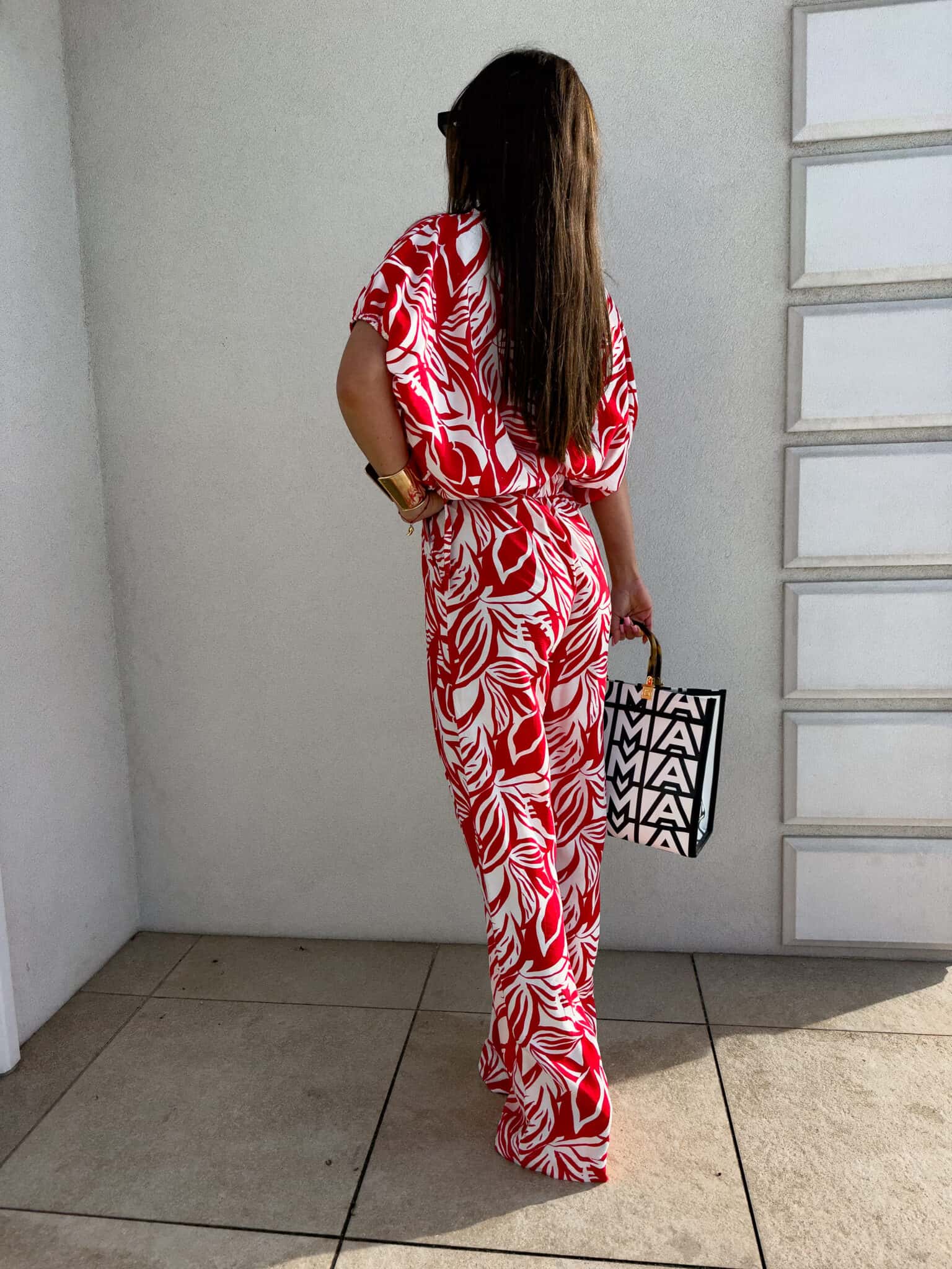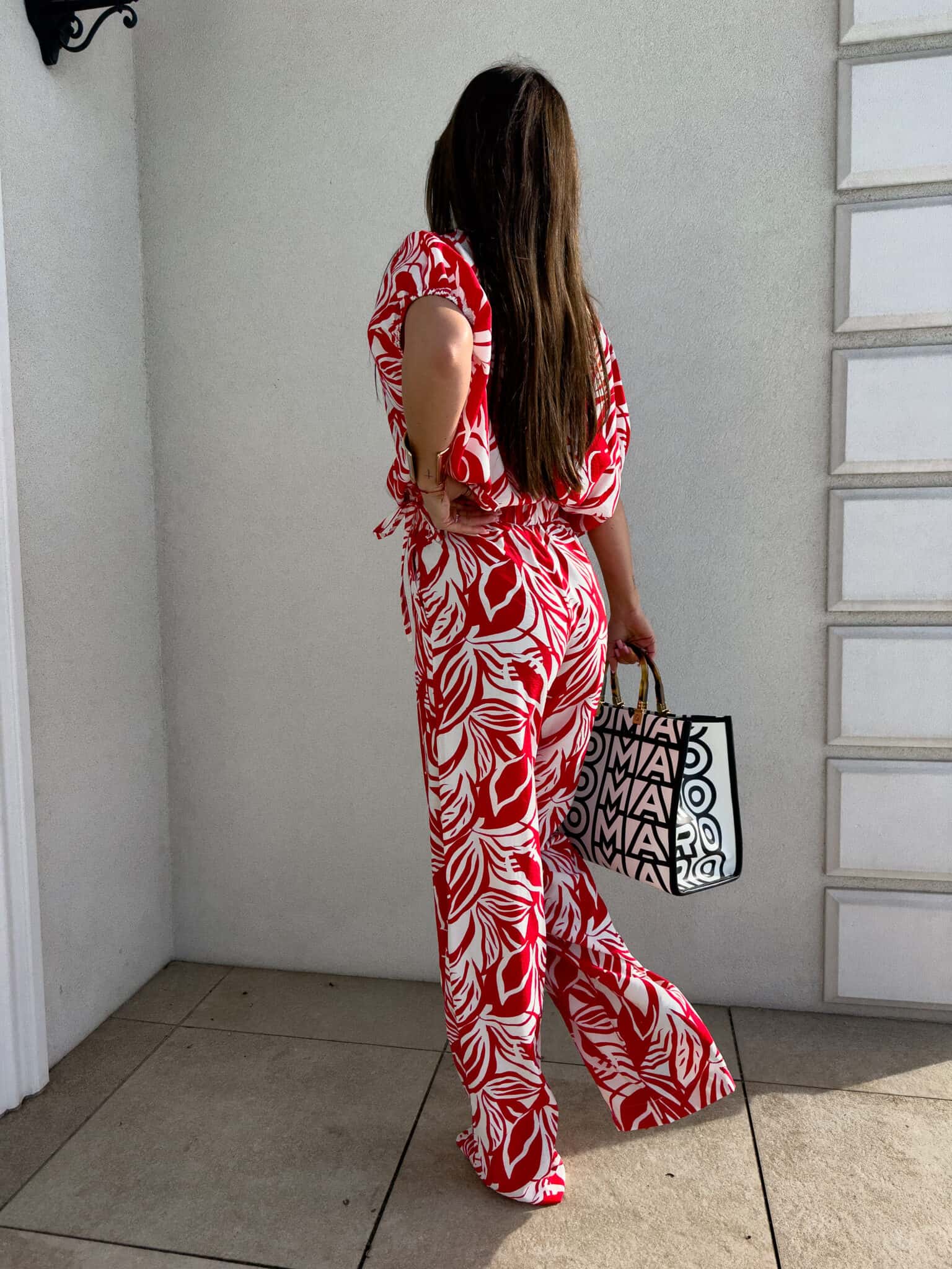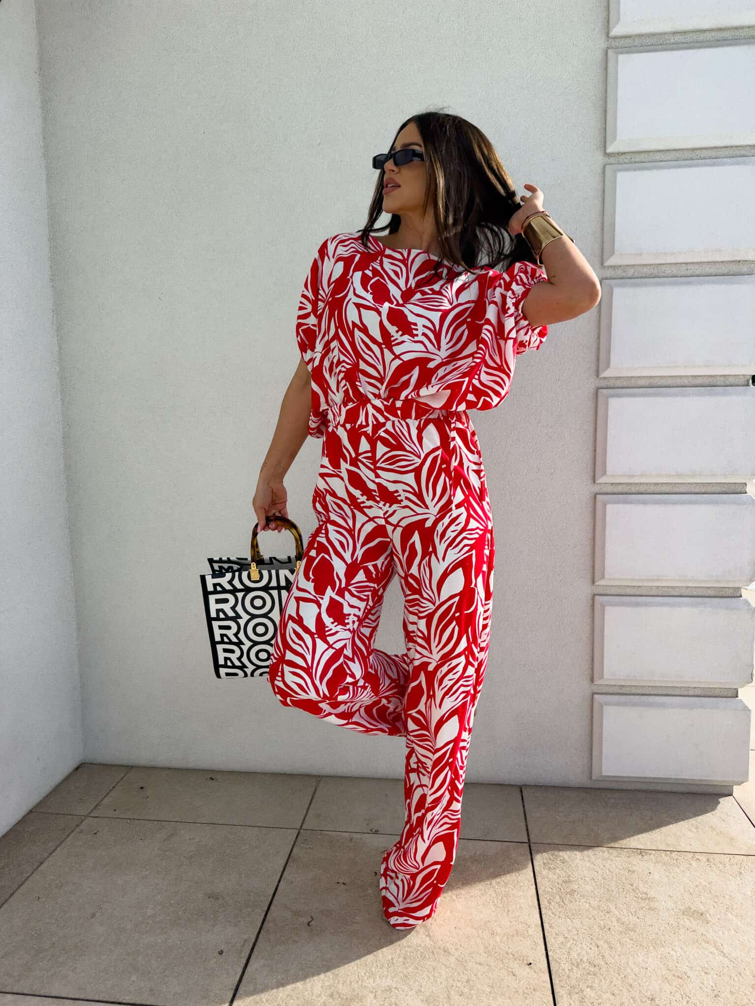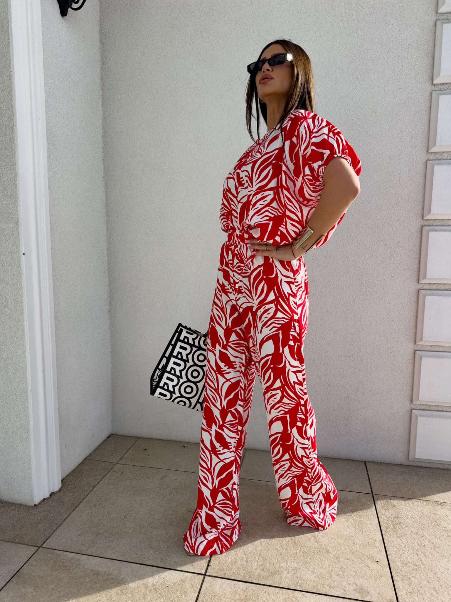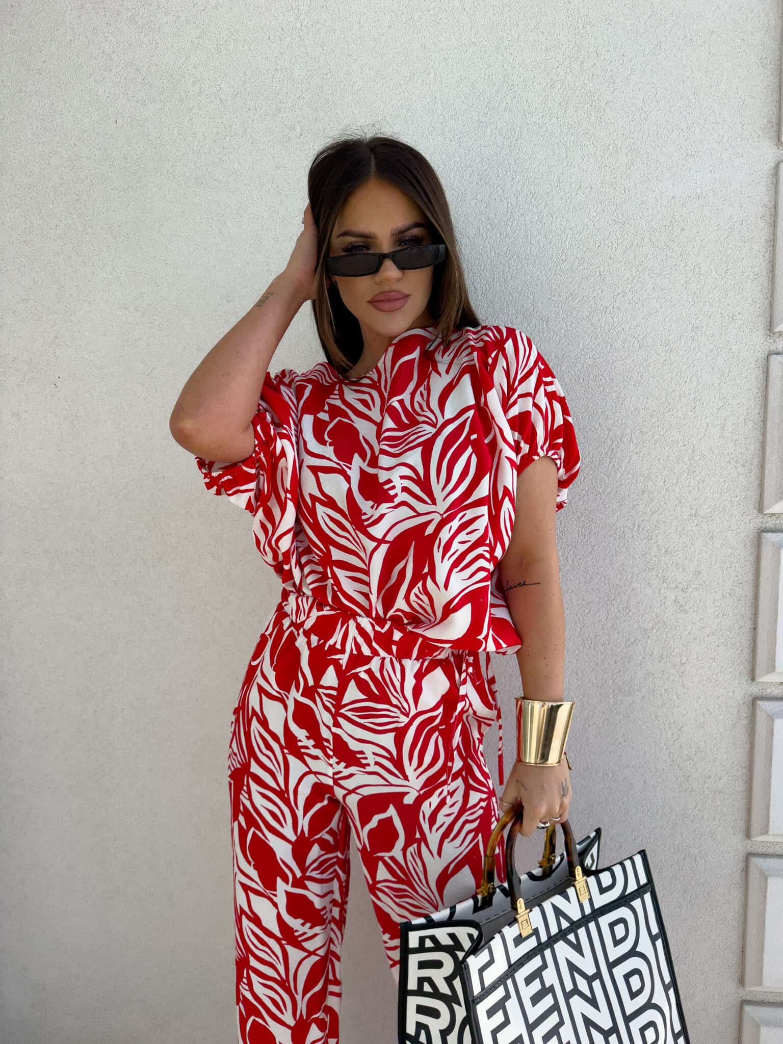 Komplet LUXE print flowers – ecru-czerwony